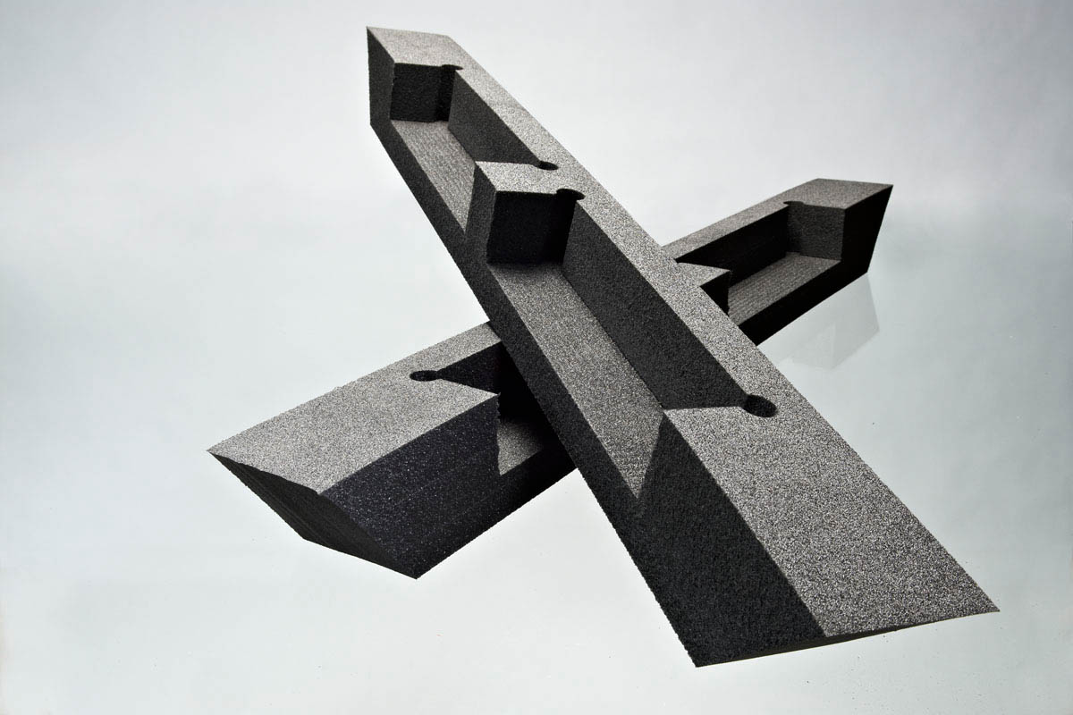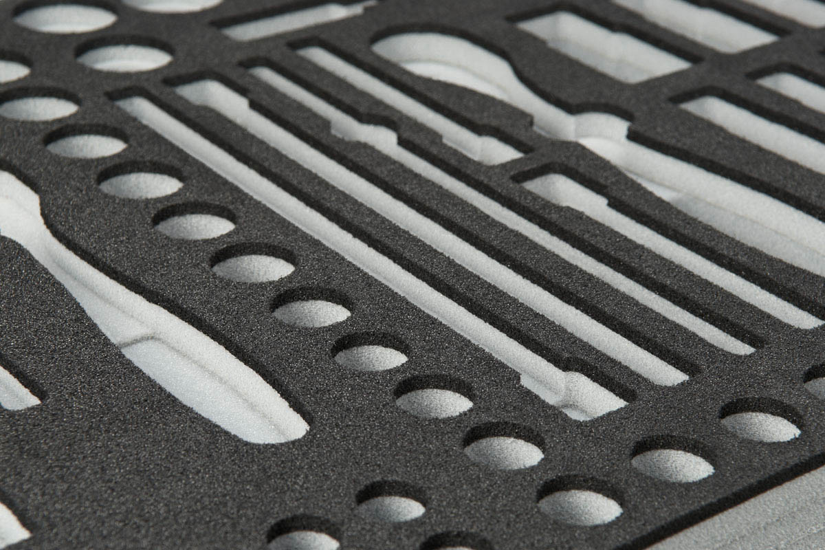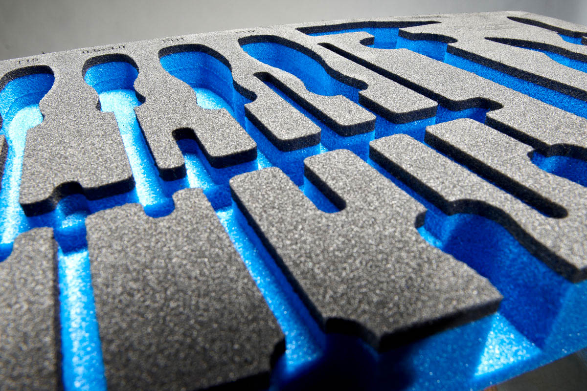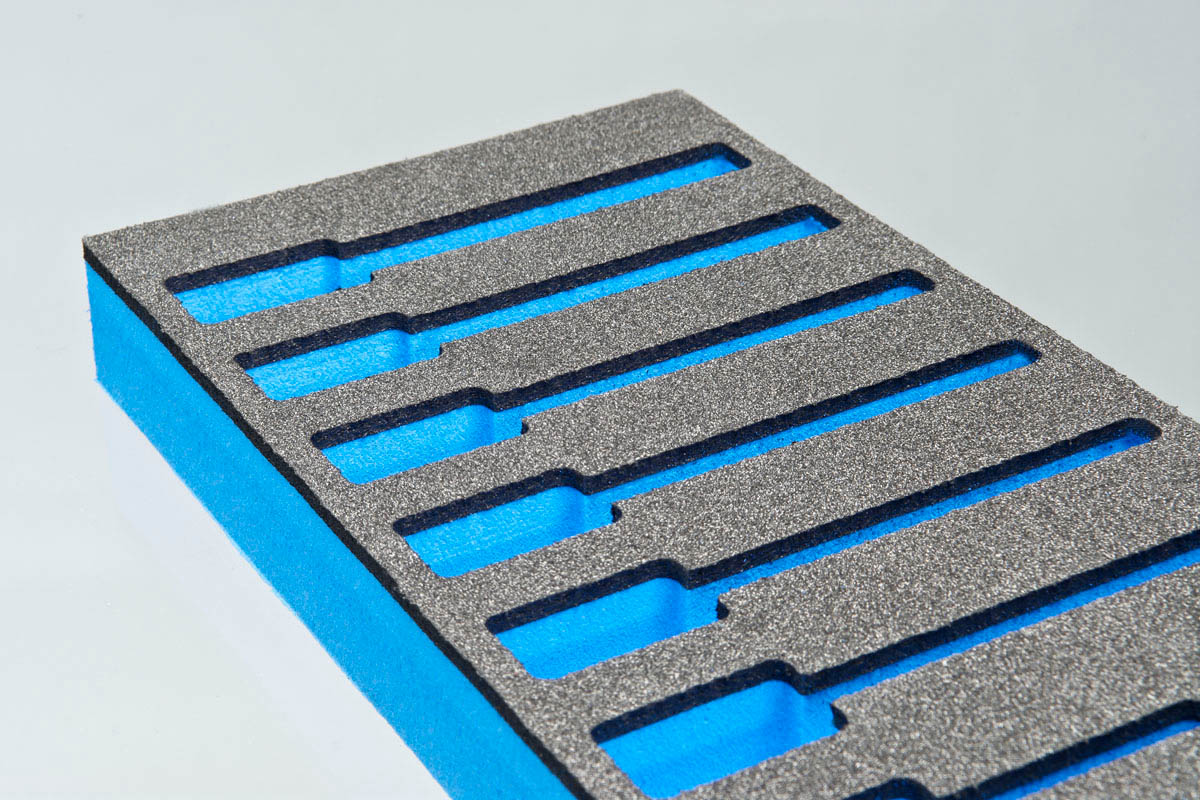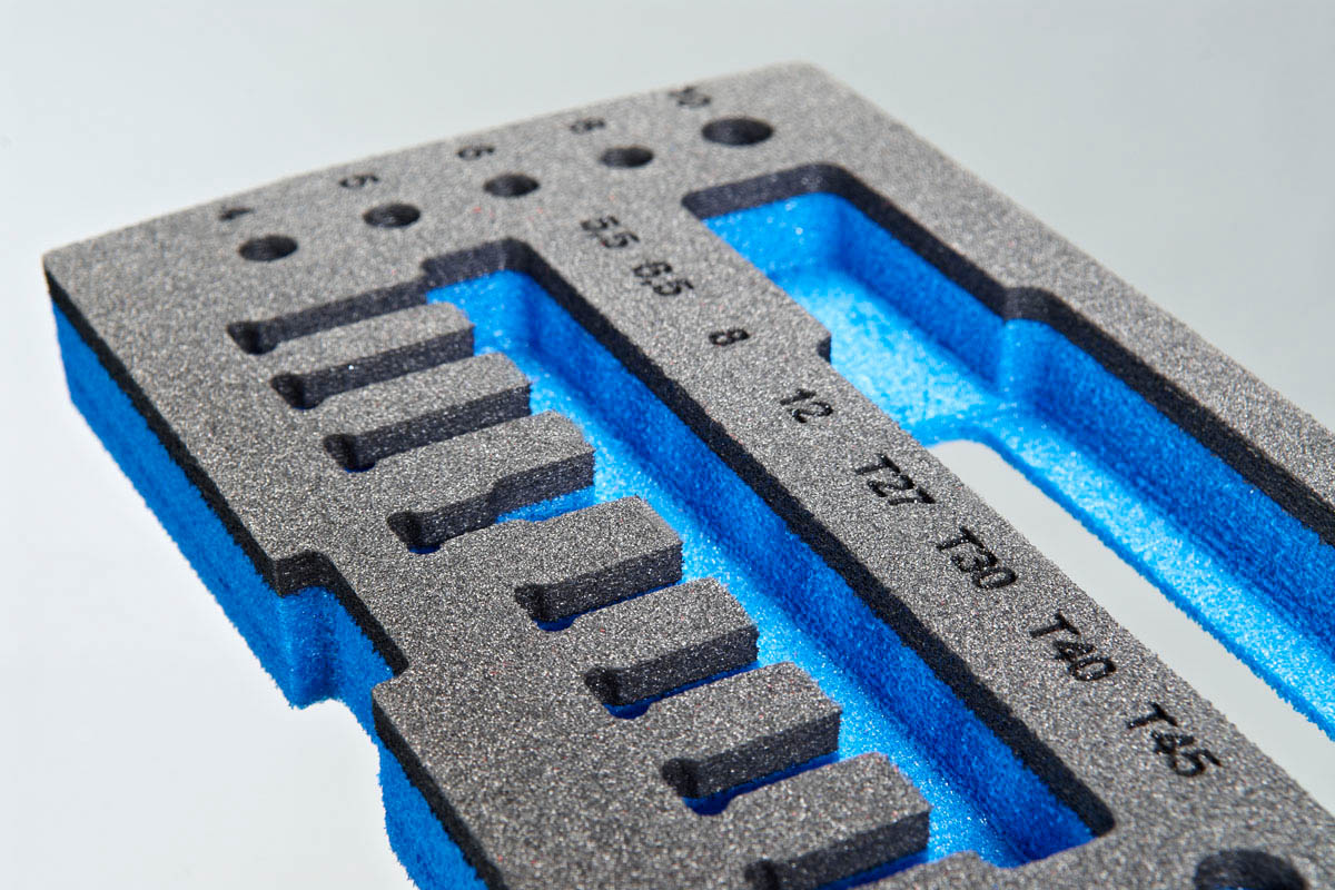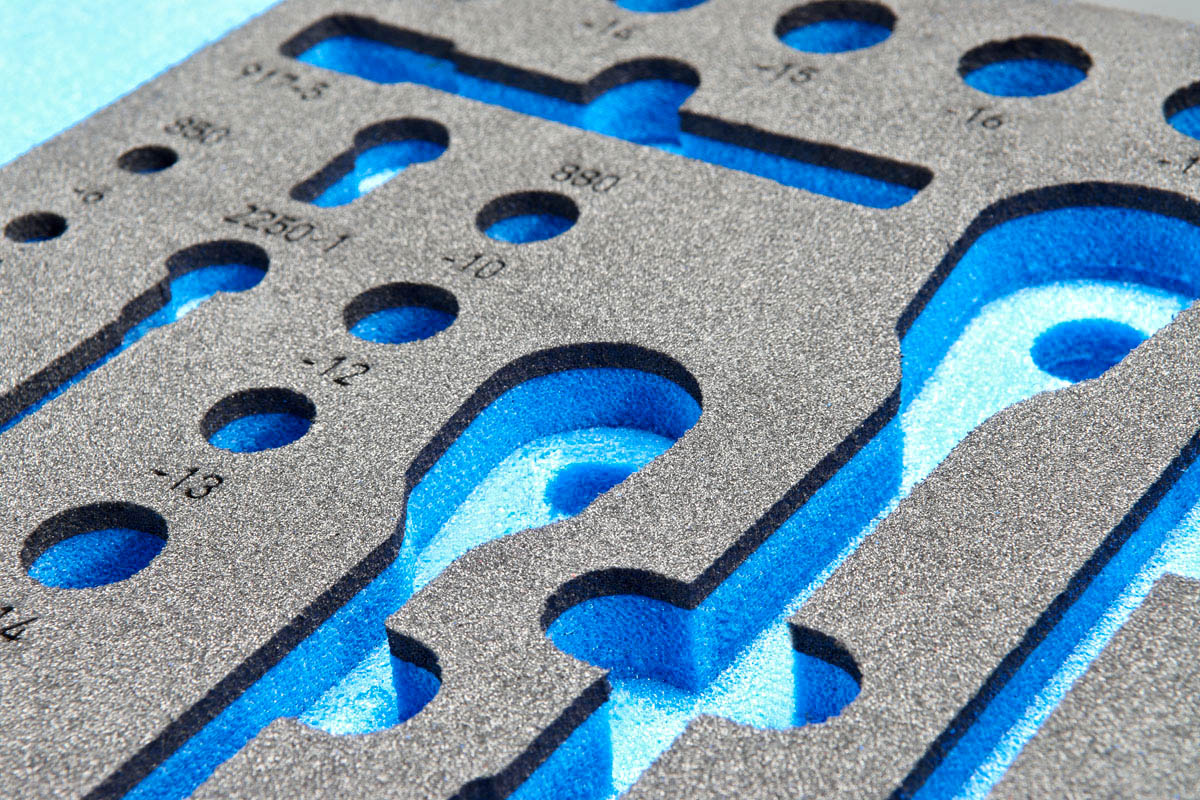 In unserem modernen Maschinenpark produzieren wir neben Koffereinlagen und Kofferausstattungen aus Schaumstoff auch technische Schaumstoffteile und technische Teile oder Produkte aus Hartschaumstoff. Dazu zählen zum Beispiel Ladungsträger sowie zweifarbige Werkzeugeinlagen, auch Shadowboard genannt, für Werkstattwagen. Des Weiteren fertigen wir aus schwer entflammbarem Spezialschaumstoff Lüfterpolster sowie Rohrisolierungen, wie sie beispielsweise in Klimageräten eingesetzt werden.