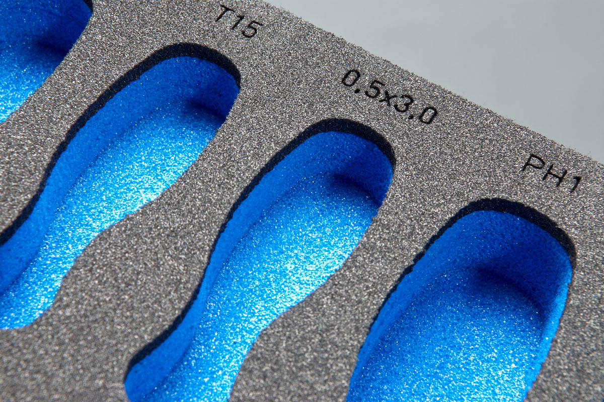 Das Fräsen bietet die größte Flexibilität bei der Verarbeitung von Schaumstoff. Daher ist das Fräsen neben Stanzen und Wasserstrahlschneiden das von uns bevorzugte Verfahren. Das Fräsen stellt gerade bei dünnen Wänden und feinen Details eine Herausforderung dar. Wir arbeiten daher mit speziell angefertigten Sondermaschinen, die exakt auf die hohen Anforderungen bei der Schaumstoffverarbeitung zugeschnitten sind. Damit können wir selbst extrem dünnwandige Schaumstoffeinlagen produzieren.